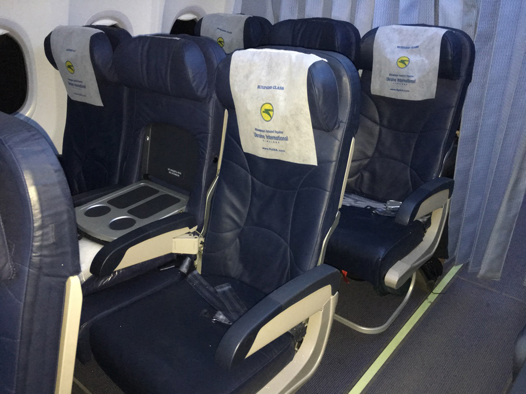 Das Schmalrumpfflugzeug ist eigentlich für Kurz- und Mittelstrecken gebaut. Manche Airlines leisten sich sogar richtige Sessel für die Kunden der Business Class, bauen ein Entertainment System in beide Klassen ein und statten den Jet mit Steckdosen und Wifi aus. Nicht aber UIA, wie die ukrainische Gesellschaft abgekürzt heißt.
