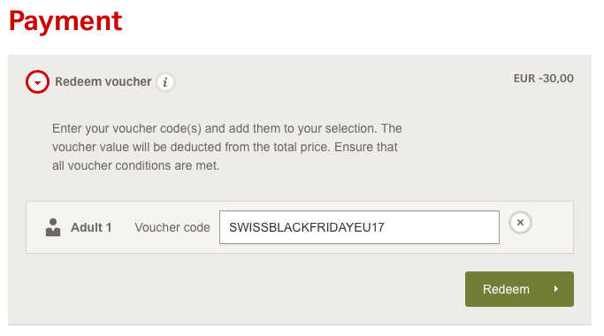 30 Euro Swiss Gutschein Code: SWISSBLACKFRIDAYEU17