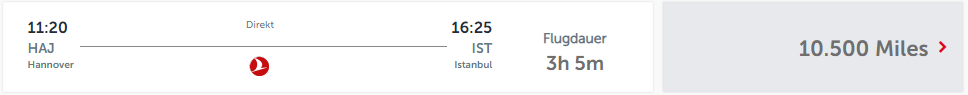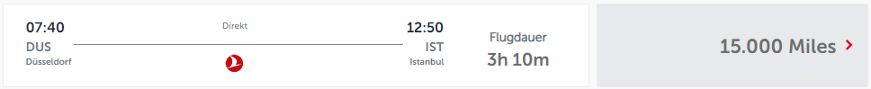 Beispiel eines Business Class Awards von Deutschland nach Istanbul: