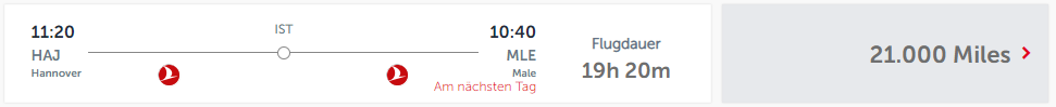 Beispiel eines Economy Class Awards von Deutschland auf die Malediven: