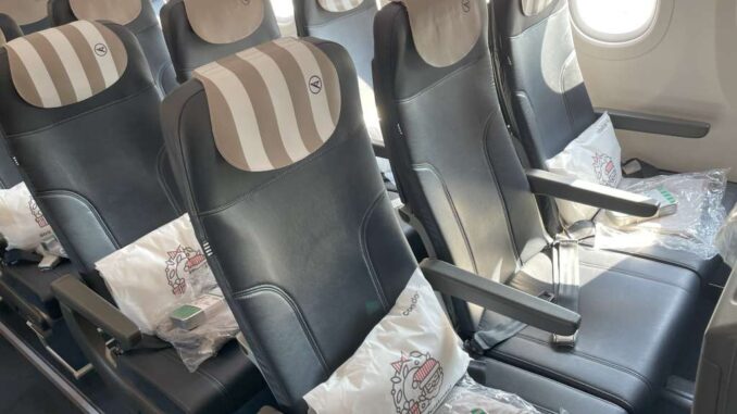 Sitzereihe für die Premium Economy mit geblocktem Mittelsitz. Foto: Sebastian
