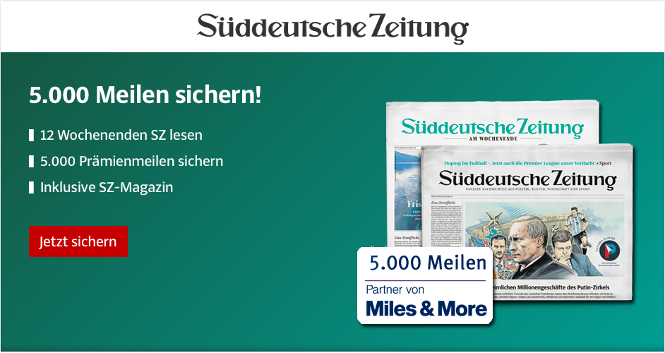 Mit Zeitschriften und Zeitungen lassen sich bekanntlich sehr einfach und effizient Meilen sammeln. Die Süddeutsche verschenkt gerade zum 12 Wochen Abo der Süddeutschen am Wochenende satte 5.000 Meilen für 49,90 Euro. Hierbei entsteht ein hervorragender „Meilenpreis“ von nur 9,98 Euro pro 1.000 Meilen. Damit ist es eines der günstigsten Angebote, welche es momentan gibt. Normalerweise lassen sich solche Werte nur durch Payback Prämienabos erzielen.