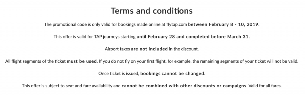 Grundsätzlich sind die Rabattcodes im gesamten Streckennetz auf von TAP Portugal durchgeführte Flüge in der Economy Class und Business Class anwendbar.