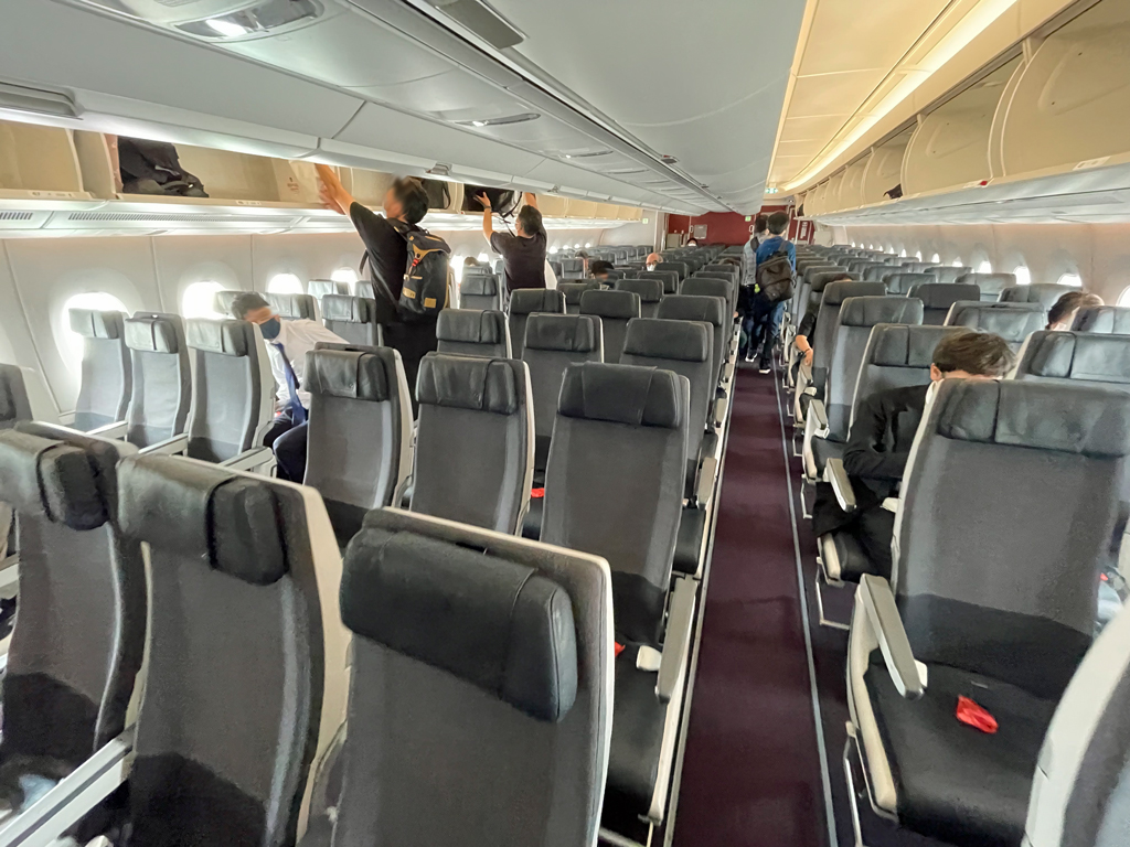 Blick nach vorn in der Kabine (JAL Shell Flat Neo Business Class Sitz)