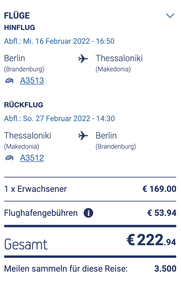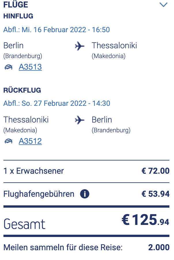 Neben dem günstigsten Light-Tarif werden auch die Optionen Flex sowie ComfortFlex angeboten. Der hochwertigste Tarif lohnt sich sehr, da dieser die Gepäckaufgabe, Sitzplatzreservierung und flexible Änderungen inkludiert. Der Aufpreis ist verhältnismäßig, Hin- und Rückflug kosten im Beispiel von Berlin-Thessaloniki ca. 126€.