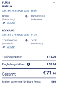 Während der Promo gibt es zahlreiche Angebotstarife, die auch als günstige oneway-Flüge schon ab 35€ zu haben sind. Entsprechend gibt es Return-Trips wie von Berlin nach Thessaloniki und zurück schon ab 72€.
