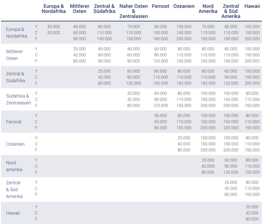 • 70.000 Statusmeilen innerhalb von 12 Monaten