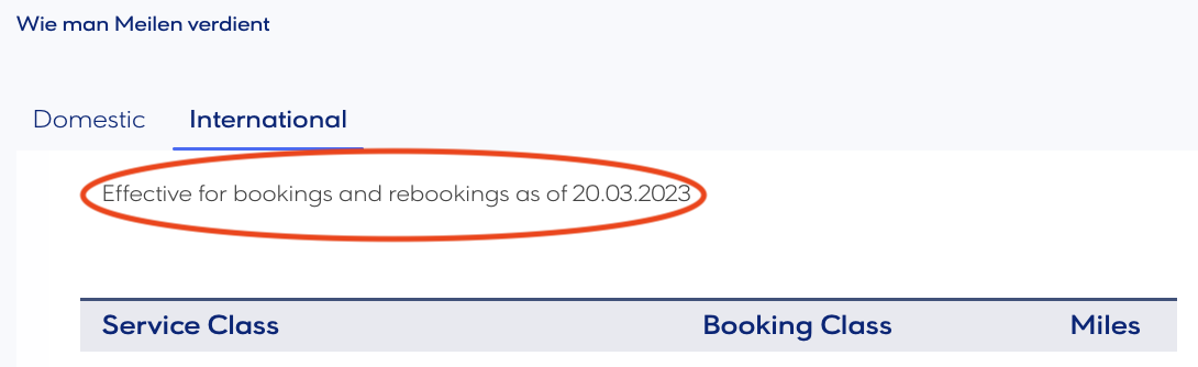 | Service Class | Booking Class | Miles (ab 20.03) (bis 19.03) |