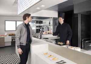 Der Service in der Business Class soll aufgewertet werden, jedoch kann man aufgrund der kurzen Flugzeit nicht zu viel erwarten. Air France spricht hier von einem Snack, was auf den Bildern wie etwas zum Knabbern aussieht und natürlich Getränken inklusive Champagner.