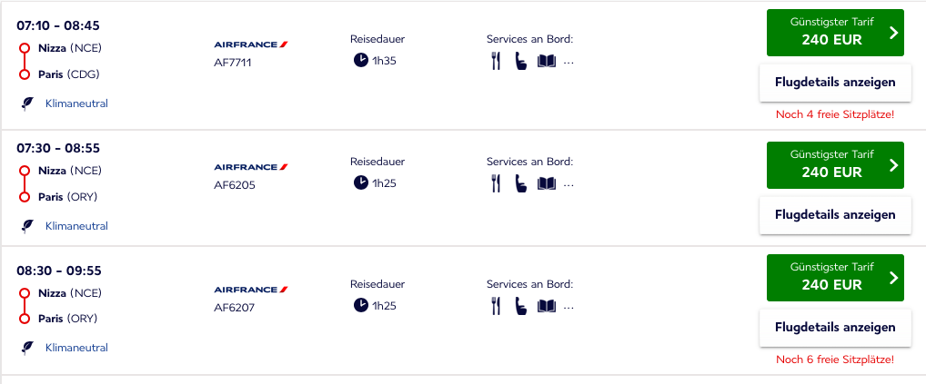 Selbst wenn man mit einem 12.000 Euro First Class Ticket in der fantastischen Air France First Class in Paris landet, würde man auf dem Weiterflug nach Nizza nur in der Economy Class fliegen.