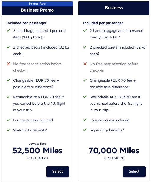 Mit dem Pendant der Meilenschnäppchen von Air France und KLM kann man ganz günstige Flüge bekommen. Bei den angezeigten Meilenpreise handelt es sich um oneways- dafür ist man aber flexibler als bei Miles&More und kann Gabelflüge buchen oder eine Teilstrecke in einer anderen Klasse reservieren. Im Tarif sind Freigepäck und Sitzplatzreservierung inklusive, die Flüge können gegen Gebühr geändert oder storniert werden.