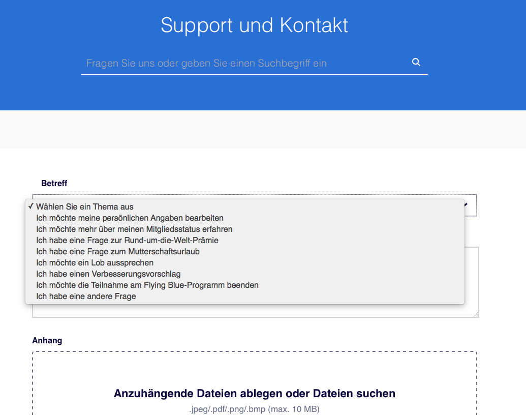 - Vom Betreff her, dürfte wohl keiner so richtig passen. Also würde ich „Ich habe eine andere Frage“ als entsprechenden Betreff wählen. Ihr könnt im Anschluss einen freien Text eintragen und auch die passenden Screenshots von Eurer airberlin Karte sowie von euerm Flugverlauf schicken.