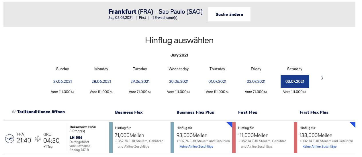Aktuelle Lufthansa First Class Prämienflüge Verfügbarkeit | Frankfurtflyer Kommentar