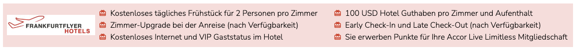 Die Buchungen über unser Frankfurtflyer Hotel Portal gelten als Direktbuchung und bringen somit Punkte und eine Statusgutschrift! Parallel können auch alle laufenden Promos wie diese mitgenommen werden. Das Beste sind aber die zahlreichen Benefits, die teilweise üppiger als die Vorteile mancher Statuskunden sind!