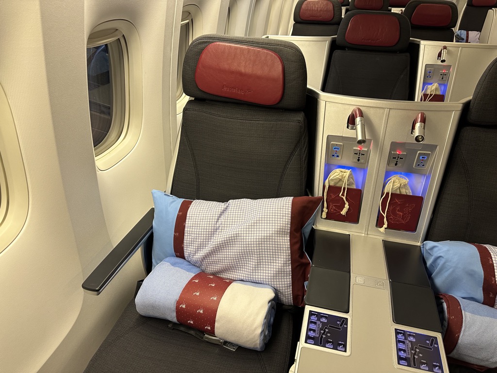 Ein riesiger Vorteil, dadurch entsteht keine Komplexität wenn es mal kurzfristig zu einem Wechsel der Flugzeuge kommen wird. Alle sieben Maschinen haben 26 Plätze in der Business Class, die in der 1-2-1 Anordnung jedem Fluggast direkten Zugang zum Gang ermöglichen. In der regulären Economy Class sind 247 Sitzplätze, 21 Gäste können in der bequemeren Premium Economy fliegen. Um das Design der Kabine an Austrian Airlines anzupassen wurde bei den ersten beiden Bamboo-Jets ein Facelift vorgenommen.