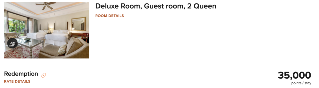 Eine Übernachtung in einem Standardzimmer kostet dort 508 US$, aber nur 35.000 Punkte.