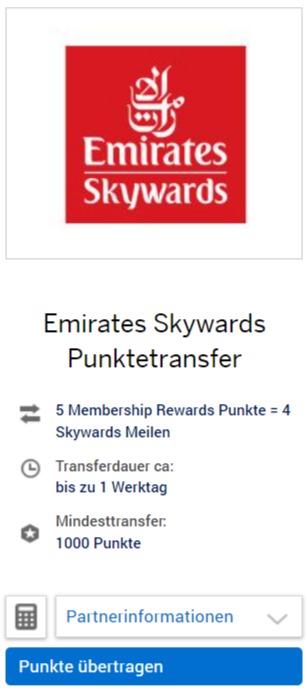 Bisher: 40.000 Membership Rewards = 40.000 Emirates Skywards Meilen