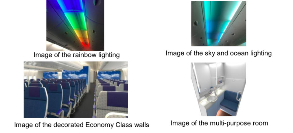 Hawaii ist das zentrale Thema des Airbus A380 von ANA und auch bei der Kabinengestaltung hat man genau hierauf Wert gelegt. Mit passender Beleuchtung und einem „Multi- purpose room“, welcher sich zum Beispiel an Mütter mit kleinen Kindern richtet, um diese zu stillen oder zu wickeln. Ebenso können sich Passagiere hier umziehen. Grundsätzlich eine sehr schöne Idee.