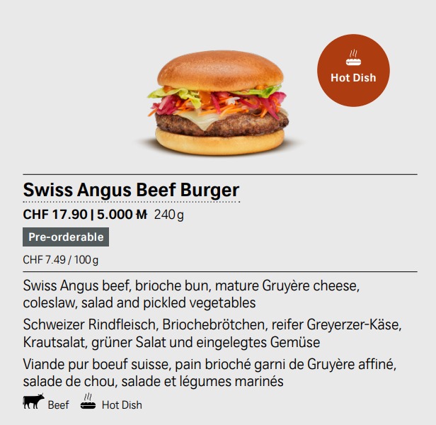 Angus Burger und Club Sandwich – Diese Speisen tischt Euch Swiss gegen Bezahlung auf