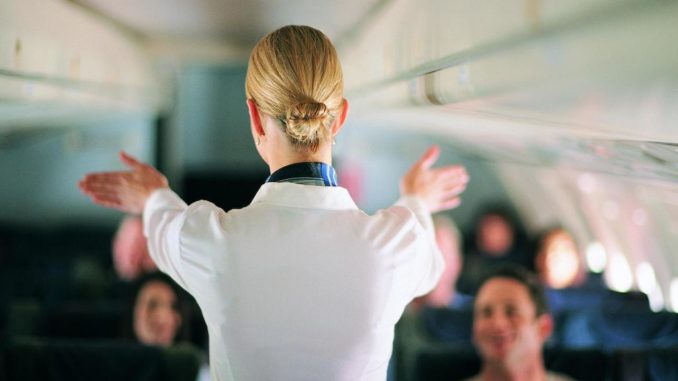 Ist keine Videoanlage an Bord oder ein Bildschirm im Vordersitz eingebaut, gibts die Sicherheitsvorkehrungen als Live-Demonstration von der Besatzung. Wir Flugbegleiter haben diese schon unzählige Male vorgeführt, Ihr habt diese auch schon ebenso oft gesehen.