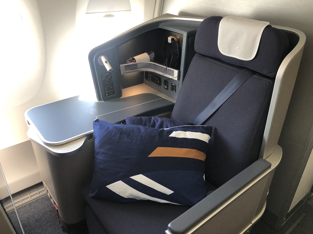 Die Sitze bieten deutlich mehr persönlichen Freiraum als die aktuelle Lufthansa Business Class, sowie mehr Privatsphäre und durch die 1-2-1 Anordnung auch direkten Gangzugang.