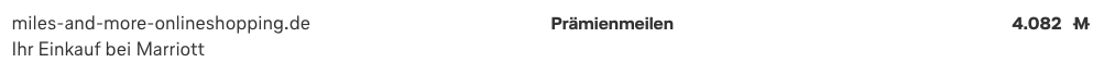 Mit der laufenden Promotion von Miles&More muss eine Reservierung jedoch zwingend über das Onlineshopping Portals von Miles&More erfolgen. Dabei leitet man Euch einfach zur normalen Marriott Homepage weiter wo Ihr ganz normal buchen könnt. Nach erfolgreicher Buchung erscheint meist am Folgetag ein entsprechender Vermerk auf Eurem M&M Konto: