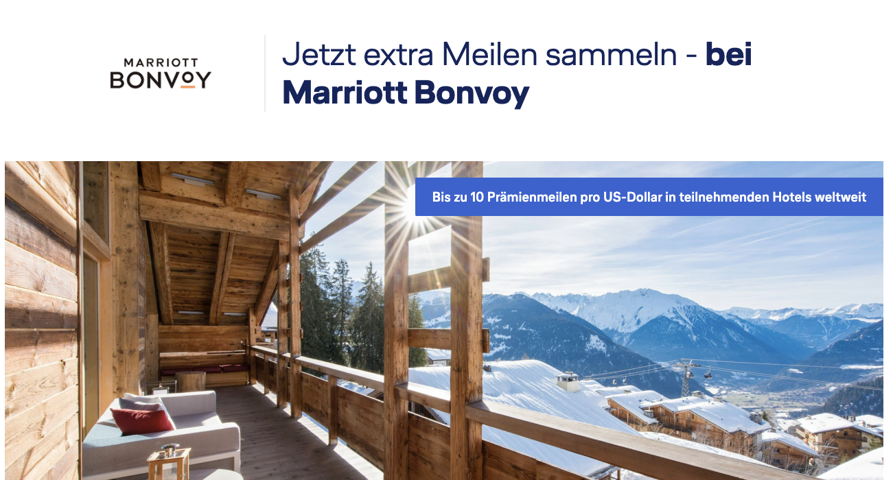 Die riesige Hotelkette Marriott bietet treuen Kunden mit dem Programm Bonvoy ein attraktives Bonussystem. Neben dem Sammeln und Einlösen von Punkten können Vielschläfer von Statusvorteilen profitieren. Zusätzlich dazu gibt es die Möglichkeit neben Bonvoy Punkten auch Miles&More Prämienmeilen für die Hotelbuchung zu sammeln. Derzeit gibt es wieder eine Aktion mit einem Bonus, dadurch sind bis zu 10 Prämienmeilen für jeden ausgegebenen US$ möglich- plus Bonvoy Punkte!