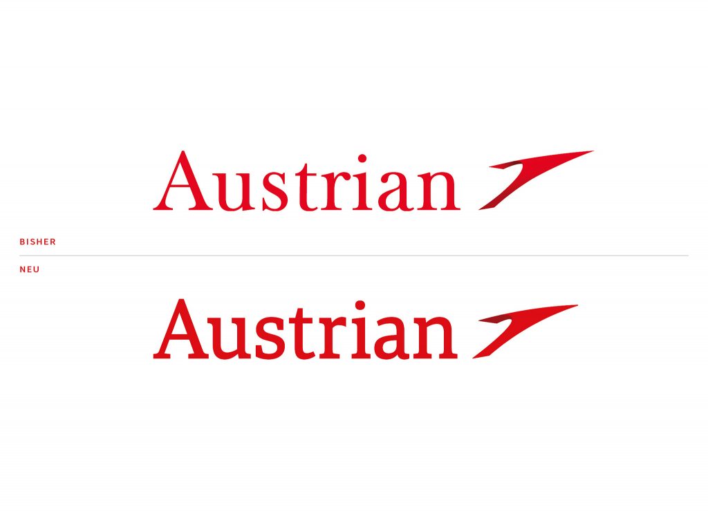Wie auch bei Lufthansa, wird man bei Austrian Airlines in Zuge des veränderten Marktauftrittes das Logo leicht verändern. Allerdings handelt es sich hierbei um ein eher kleinere Veränderungen, welche nur bei direkter Gegenüberstellung deutlich werden.