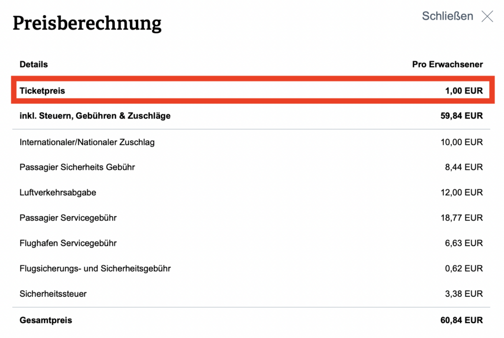 Günstiger kann Austrian Airlines diese Flüge auch nicht anbieten, denn der Ticketpreis liegt hier schon für den Hin- und Rückflug bei nur 1 Euro. Der Rest sind Steuern und Gebühren und nach den gesetzlichen Vorgaben in Österreich, ist es nicht erlaubt, Tickets günstiger anzubieten, als die gesetzlichen Steuern. Dies gilt zumindest für Abflüge aus Österreich. Entsprechend wird ein Ryanair Ticket auf dieser Strecke auch nicht günstiger verkauft werden dürfen.