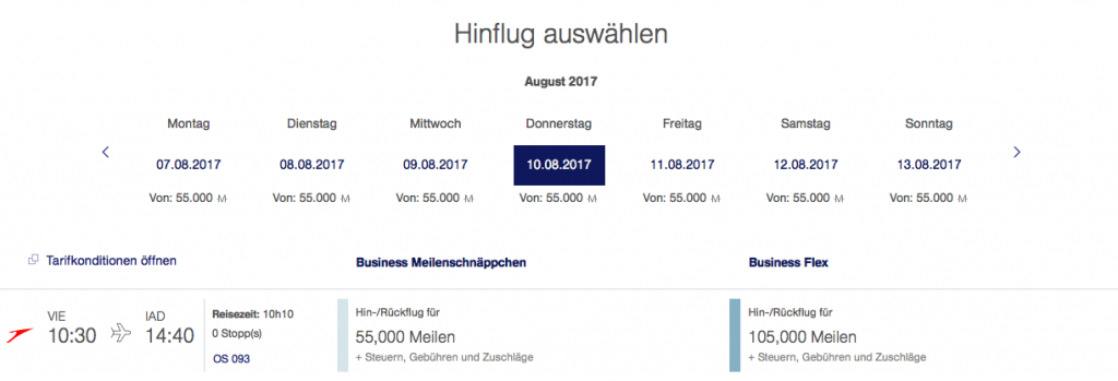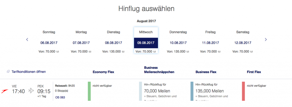 Austrian Airlines Meilenschnäppchen August 2017 | Verfügbarkeit