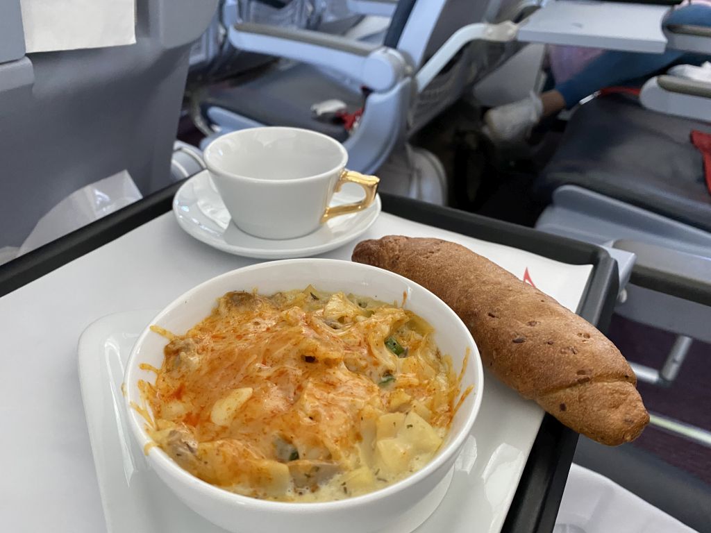 Der Sitz ist insbesondere von den Schlafeigenschaften her sehr gut. Daher kann ich ihn Euch nur wärmstens empfehlen. Auch den Service in der Business Class bei Austrian Airlines kann man als sehr hochwertig bezeichnen. So fliegt auf allen Langstrecken ein Koch mit, welcher das Essen an Bord zubereitet und anrichtet.