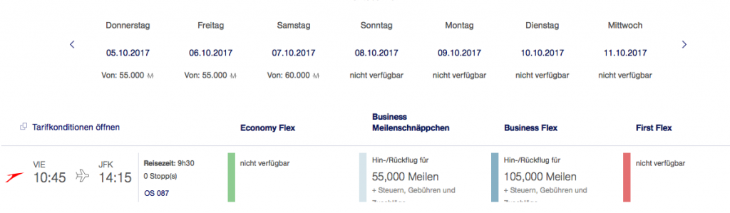Austrian Airlines Meilenschnäppchen September 2017 | Verfügbarkeit