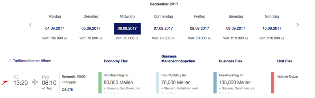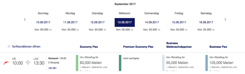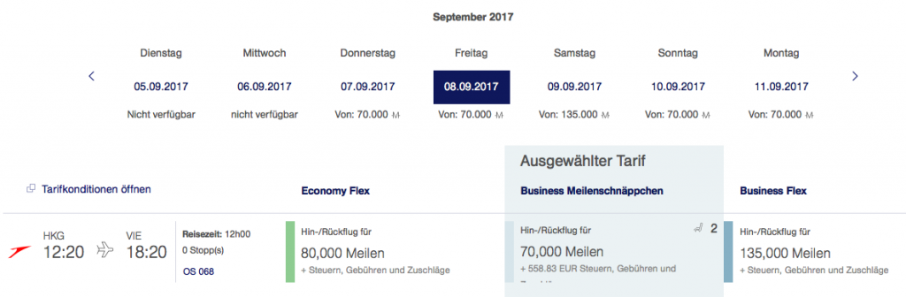 Austrian Airlines Meilenschnäppchen September 2017 | Verfügbarkeit