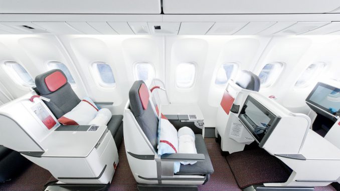 Auf allen Langstreckenflugzeugen hat Austrian Airlines einen modernen Lie-Flat Business Class Sitz verbaut, wie man ihn zum Beispiel von der Swiss kennt. Auf den Boeing 767 sind die Sitze in 1-2-1 Konfiguration verbaut. In der 777 findet Ihr eine versetzte 1-2-1 und 2-2-2 Anordnung.