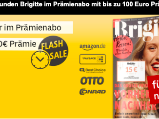 Der deutsche Post Leserservice hat gerade einen Flash Sale für das Magazin „Brigitte“ aufgelegt, bei welchem man aktuell ganze 8.550 Payback Punkte/ Miles&More Meilen sammeln kann. Bei einem Preis von 94,90 Euro (bei Verwendung unseres Gutscheins FLYER5EURO) ergibt sich eine Ratio von 11,09 Euro je 1.000 Meilen. Damit ist […]