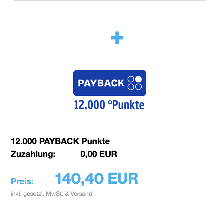 - HÖRZU | 10.070 Payback Punkte (12.084 bis zu 13.091 Meilen) für 140,40 Euro (11.62 Euro bis 10,72 Euro je 1000 Meilen)