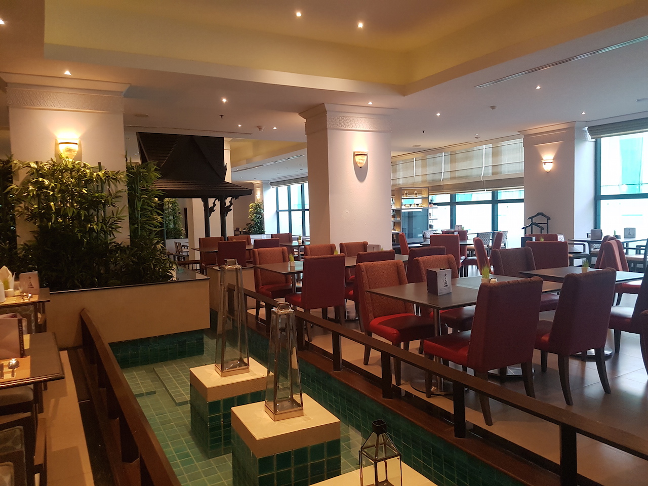 Das Hotel verfügt neben einem großen Restaurant im Erdgeschoss, in dem das Frühstück serviert wird auch über ein japanisches Restaurant. Dies hat sogar einen recht guten Ruf und ist in Bangkok bekannt.