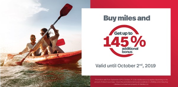 Bei Avianca Lifemiles könnt Ihr kontinuierlich Meilen zum Preis von 33 USD pro 1.000 Stück kaufen. Vom 10. September bis 2. Oktober 2019 läuft wieder ein Meilen-Sale mit individuellem Bonus von bis zu 145% Meilen on top.