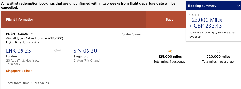 Die neue Singapore Airlines Suite war lange eigentlich nie direkt als Saver Award verfügbar. Hier konnte man zwar eine Warteliste anfragen, allerdings war es immer fragwürdig, ob diese auch bestätigt wird.