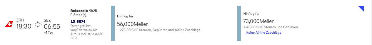Hierbei findet man zwischen November 2020 und März 2021 auf über der Hälfte aller Swiss Flügen auf die Seychellen Prämienflüge in der Business Class. Leider kann man diese Flüge nicht über jedes Star Alliance Programm buchen, sondern nur über Miles&More. Hierbei fallen 56.000 Miles&More Meilen pro Strecke in der Edelweiss Business Class an.