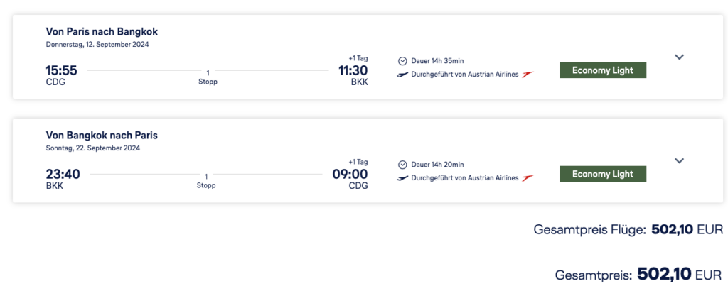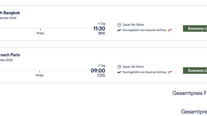 Die Flugpreise für Reisen nach Asien sind in den letzten Monaten immer weiter gestiegen. Insbesondere die Lufthansa-Gruppe hat dabei den Preispunkt ordentlich nach oben geschraubt. Wer dennoch günstig mit der Gruppe nach Bangkok fliegen möchte, der sollte dieser Tage für Verfügbarkeiten ab Paris schauen. Wie ihr die Preise erreichen könnt, erklären wir Euch in diesem Beitrag.