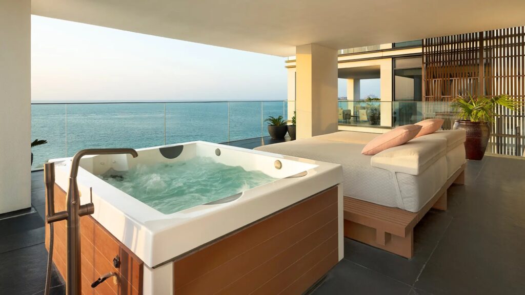 Das Banyan Tree Dubai ist ein einzigartiges Hotel, selbst in einer Stadt wie Dubai. Mit seiner Lage auf Bluewater Island, direkt an einem 500 Meter langen Privatstrand, welcher reinen Meerblick bietet, hat man einen sehr einzigartigen Standort. Direkt hinter dem Hotel findet man aber auf Bluewater auch viele Restaurants, Shops und auch die entertainment Meile von „The Walk“ oder das Ain Dubai als größtes Riesenrat der Welt, sind vom Banyan Tree Dubai zu Fuß zu erreichen.