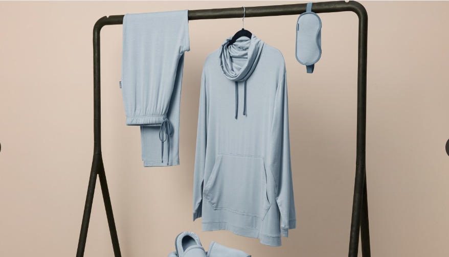 Die Business-Class-Loungewear von Emirates besteht aus einem superweichen atmungsaktiven Premium-Modal-Material. Wenig ins Corporate Design der Airline passt der Hellblauton der Kleidungsstücke. Die Kombination aus botanischen Fasern und Jersey soll laut Emirates dafür sorgen, dass die Loungewear sich elegeant an die verschiedenen Körpertypen anschmiegen soll.