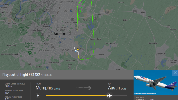 Das Portal „The Aviation Herald„, welches sich mit Vorfällen in der Luftfahrt befasst, berichtet über den kritischen Vorfall. Danach war eine Boeing 767F des Logistikunternehmens Fedex in der finalen Phase ihres Fluges von Memphis (MEM) nach Austin (AUS). Der Tower in Austin hatte schon die Freigabe für die Landung auf der Landebahn 18L erteilt.