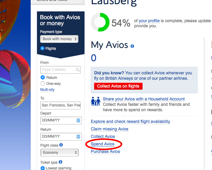 Um die Qantas Freiflüge durch Australien zu buchen, müsste Ihr Euch in Euren British Airways Executive Club einloggen und auf „spent Avios“ klicken, sowie auf der nächsten Seite auf „Book a reward Flight“.