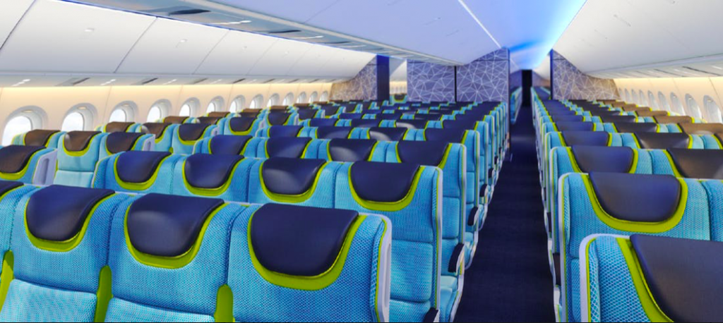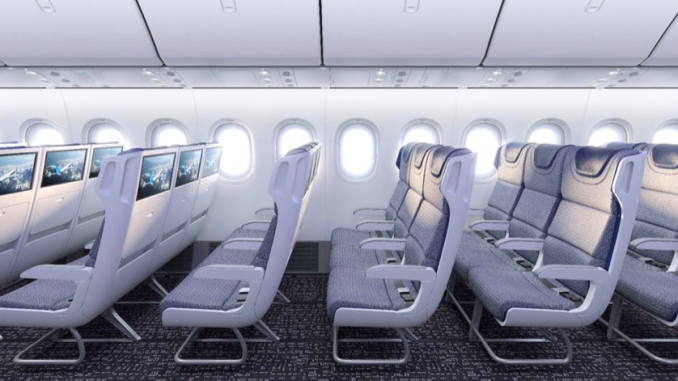 Für die Boeing 777X sieht man schon von Haus aus eine 3-4-3 Bestuhlung, also 10 Sitze pro Reihe in der Economy Class vor. Durch die erhöhte Kabinenbreite in der Boeing 777X, sollen die Sitze in der Economy Class dennoch eine angenehme Breite haben.