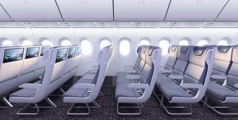 Diese Erhöhung der Kabinenbreite geschieht nicht von ungefähr, denn inzwischen hat sich in der Branche ein Standard mit 10 Sitzen pro Reihe (3-4-3) durchgesetzt. Von Boeing war für die Boeing 777 ursprünglich eine Economy Class Bestuhlung mit nur 9 Sitzen pro Reihe (2-5-2 und später 3-3-3) vorgesehen. Durch den extra Sitz verfügen die Boeing 777 mit 10 Sitzen pro Reihe in der Economy Class über die engsten Sitze aller Langstreckenflugzeuge und sind daher bei vielen Passagieren entsprechend unbeliebt.