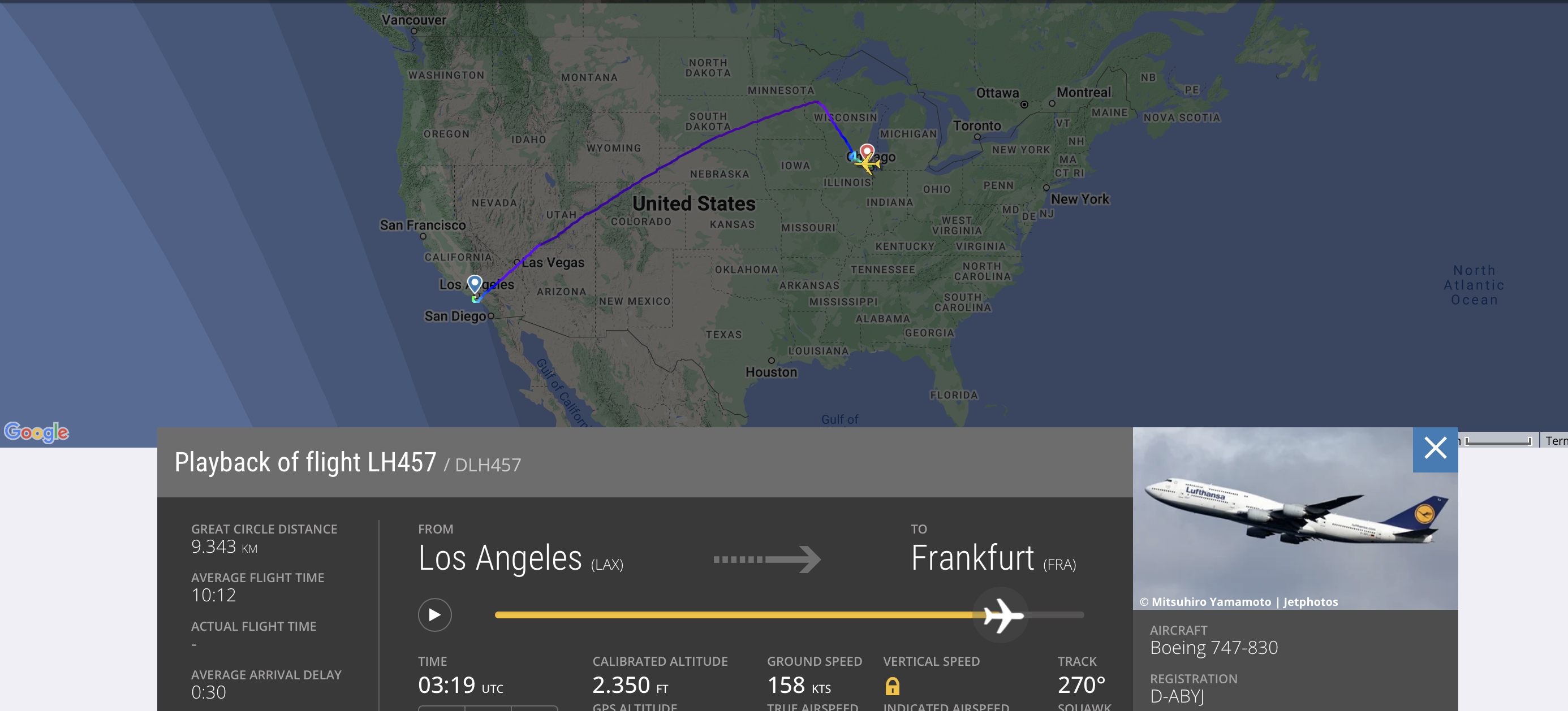 Dabei hatte LH457 am 26. Dezember dann nur eine Flugzeit von etwa drei Stunden, anstelle der geplanten 11 Stunden und man ist kurz hinter Minneapolis, kurz vor der Grenze zu Kanada abgedreht und nach Chicago geflogen. Dabei handelte es sich dann bei der Landung in Chicago NICHT um eine Notlandung, sondern nur um eine Landung aus Sicherheitsgründen, zu welcher sich die Crew entschlossen hatte. Das Feuer an Bord wurde noch vor der Landung vollständig gelöscht.