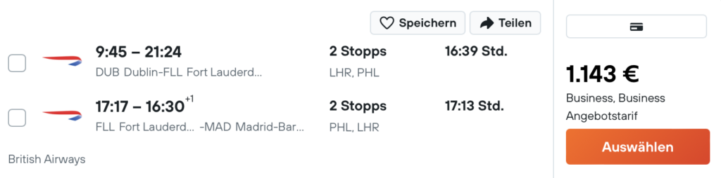Konkret startet man man bei diesem „Trick“ (der absolut legal ist!) in Dublin, fliegt von dort meist über London in die USA und auf dem Rückweg endet man die Reise in Spanien (z.B. Madrid). Dass man nicht nach Dublin zurück kehrt, sondern auch Spanien spart dann noch einmal mehrere hundert Euro.