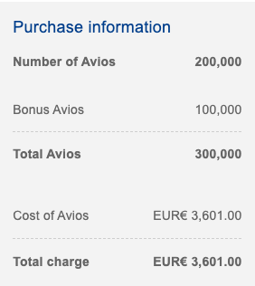Maximal darf man eigentlich nur 100.000 Avios pro Konto und Jahr kaufen. Im Rahmen dieser Aktion wurde die Grenze aber auf 200.000 Avios + Bonus heraufgesetzt, sodass man pro Account bist zu 300.000 Avios sammeln kann.